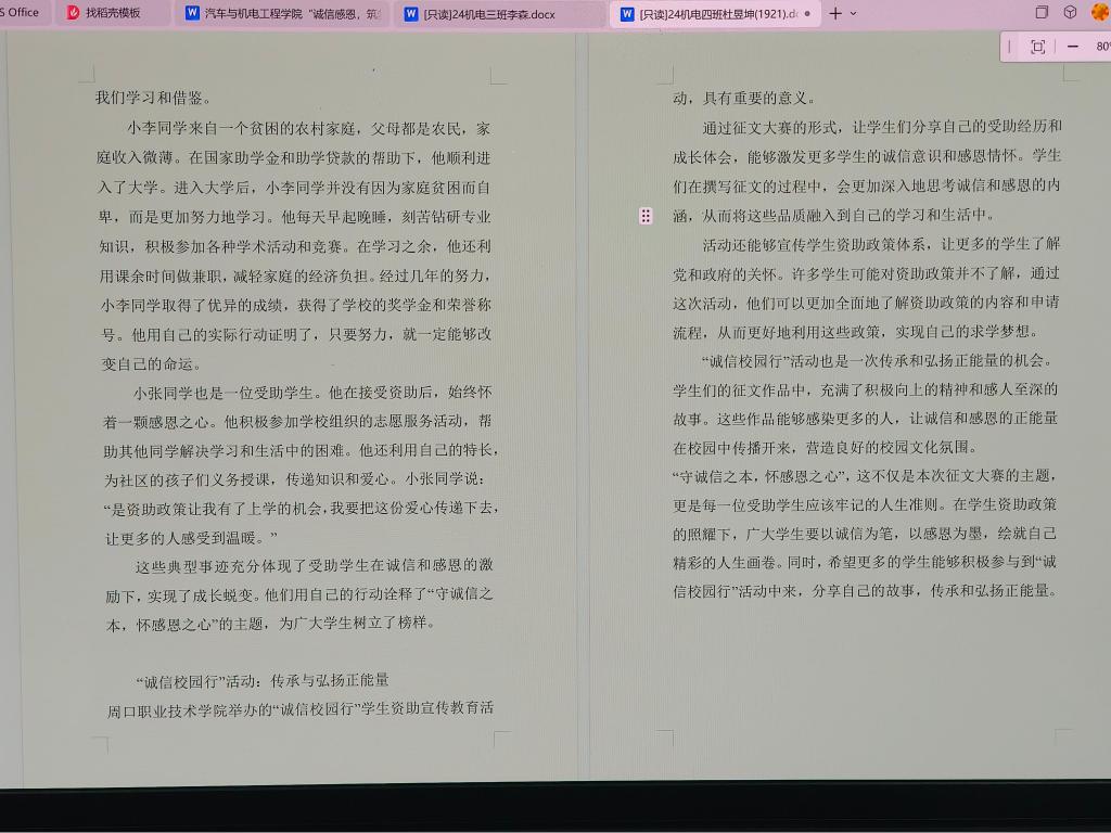 在征文评选阶段,由专业的评委团,从主题深度、内容与专业的融合度、语言表达等多个维度,对参赛作品进行了严格、公正的评审。最终,一批优秀作品脱颖而出,不仅生动诠释了活动主题,更将激励在人生征程中践行诚信、心怀感恩,向着梦想奋勇前行。