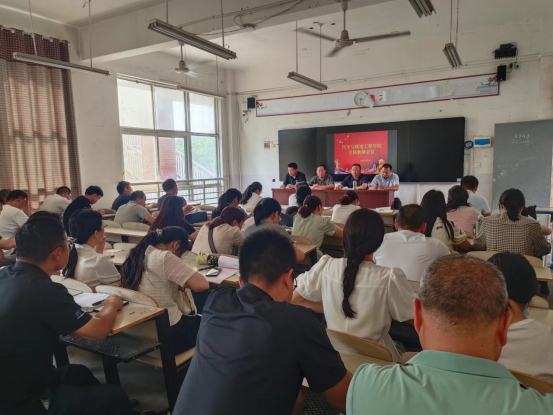 崔东风书记对过去一年的工作进行总结,对校园安全管理做了重点强调,对学期初工作提出三点要求,一是要切实做好秋季开学期间的校园安全工作,进行开学前安全大检查,全体教师要积极进行卫生内务整理,排查实训室实训设备,检查教室多媒体设备,保证顺利开展教学工作;二是上好开学第一课,加强课堂管理,提高课堂教学质量和效果;三是要做好迎新的各项准备工作。同时要求全体教师要有危机感、使命感、责任感,保持真抓实干、拼搏奋斗的工作作风,踔厉奋发、勇毅前行。
