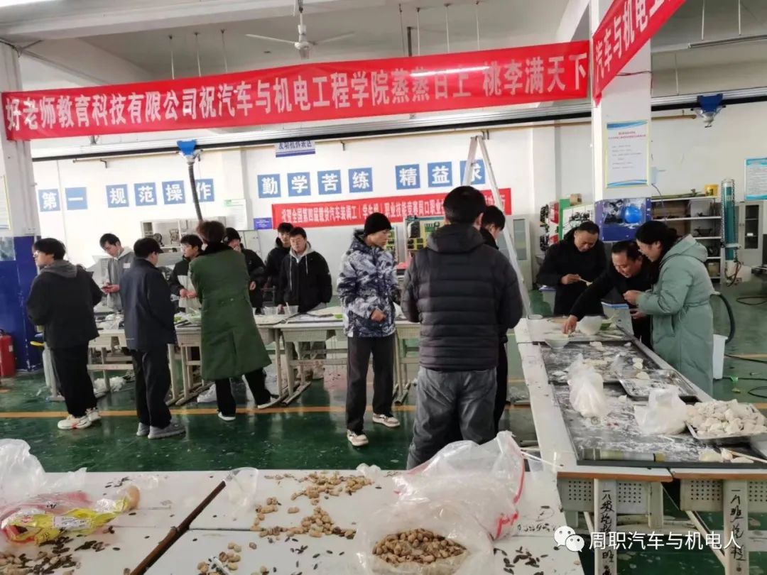 1221日下午sunbet师生在汽车实训中心组织情暖冬至师生联谊活动。公司领导崔东风书记带领员工管理工作老师们,深入到同学们中间,和同学们一起包饺子、煮饺子。全体师生们在欢声笑语中,在赞美温馨中,在相互嬉闹中,度过了一个温暖、爱心和难忘的一个夜晚。