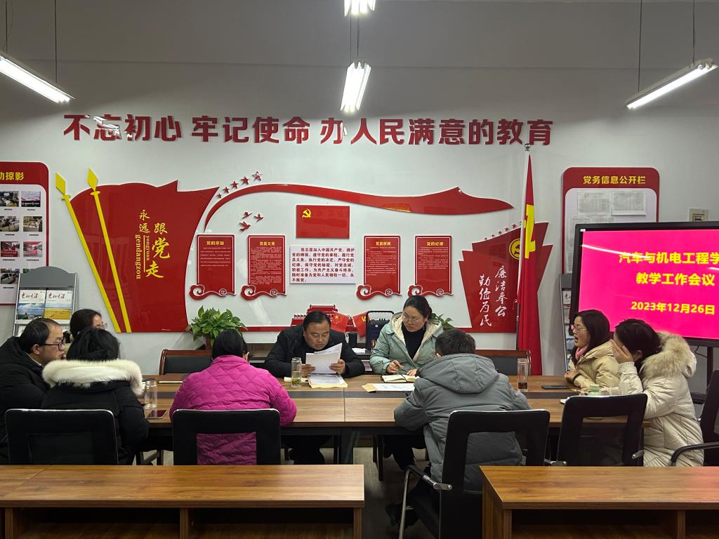 2023年1226日下午在党员活动室召开教学工作会议,李向前经理、丁兰花主任、教研室主任及实训中心主任参加会议。