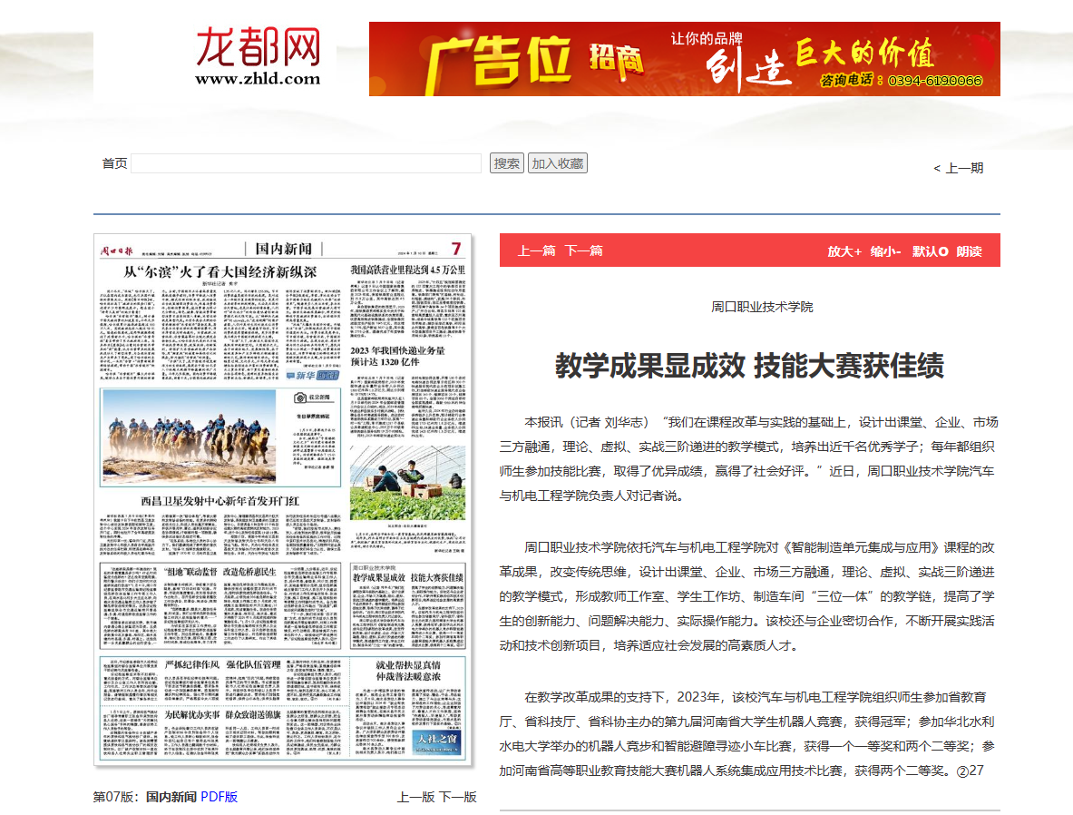 在教学改革成果的支持下,2023年,该校sunbet组织师生参加省教育厅、省科技厅、省科协主办的第九届河南省老员工机器人竞赛,获得冠军;参加华北水利水电大学举办的机器人竞步和智能避障寻迹小车比赛,获得一个一等奖和两个二等奖;参加河南省高等职业教育技能大赛机器人系统集成应用技术比赛,获得两个二等奖。