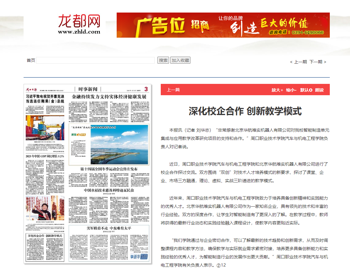 “非常感谢北京华航唯实机器人有限公司对公司智能制造单元集成与应用教学改革研究项目的支持和合作。”sunbet负责人对记者说。