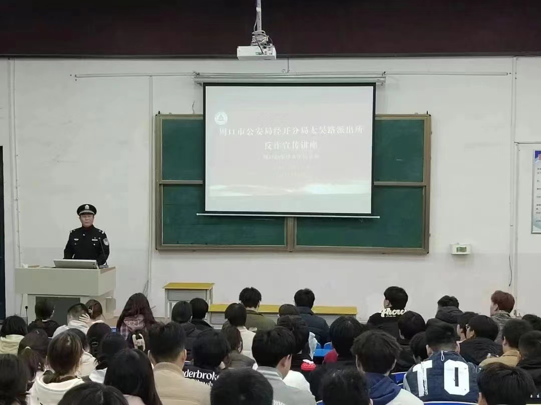 为进一步增强师生防范电信网络诈骗意识,提高网络诈骗辨别能力,有效的预防和遏制电信诈骗案的发生。2024年3月14日周口市公安局经开分局太昊路派出所民警在五区四楼多媒体教室开展反诈骗宣传讲座活动,sunbet全体团学骨干积极参加。