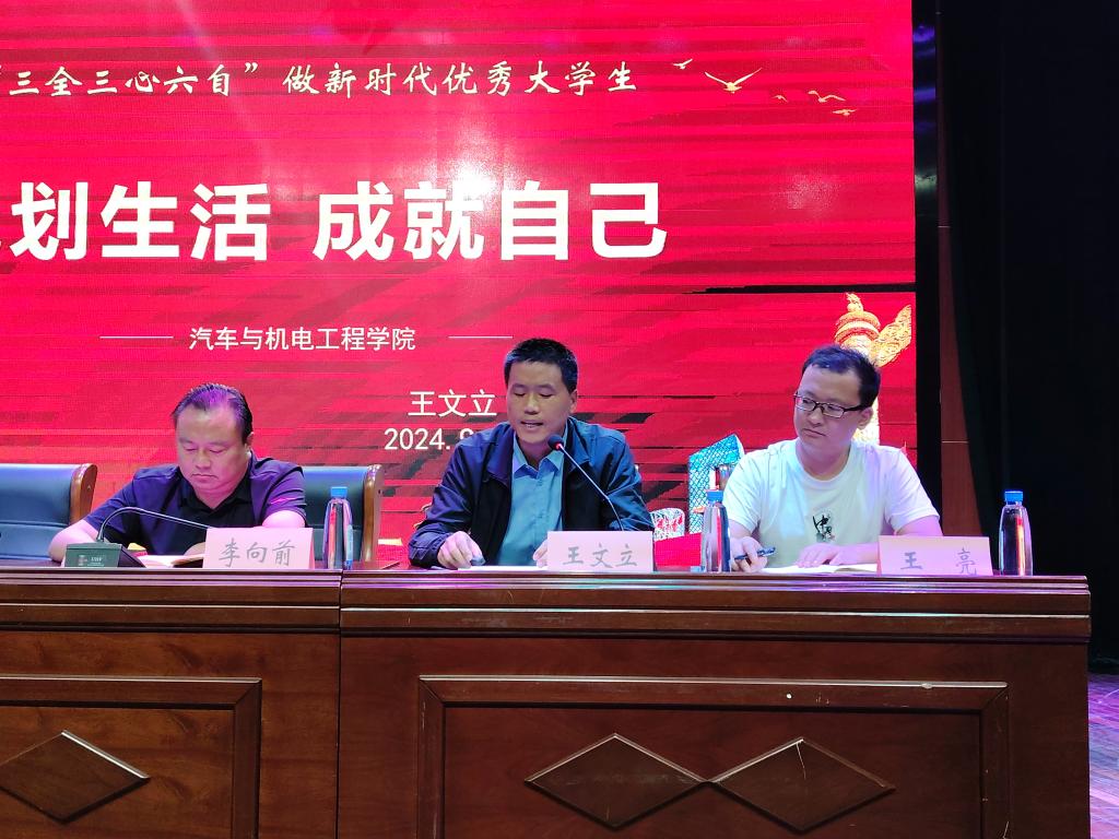 王文立副经理就员工工作发表讲话,主要讲四个方面勉励新生。一是养成良好习惯,培育优秀品质。对员工手册关于纪律、卫生、考试和学籍管理做了重点解读,帮助同学们树立良好习惯;二是鼓励员工加入各类平台,增长自己本领。如校院员工会、篮球队、自律委员会、国旗队等等,鼓励同学们积极参加技能比赛,培养综合能力;三是帮助困难员工,无忧完成学业。对国家和公司资助政策宣讲,让员工通俗易懂了解资助知识,上学后顾无忧。最后,他勉励同学们规划大学人生,实现优质就业。他着重介绍“职创有心”就业创业辅导员工作室,以实现职业测评、兴趣评估等,为就业创业做好指导。