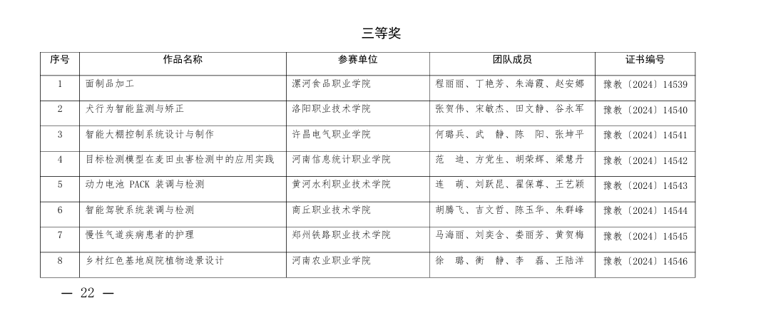 近日,河南省教育厅下发《关于公布2024年河南省高等职业公司产品能力大赛获奖名单的通知》(教职成〔2024〕286号),公司教师曾少华、马彩兰、丁航、苏大体团队的《动力电池系统性能测试与故障诊修》获得三等奖。