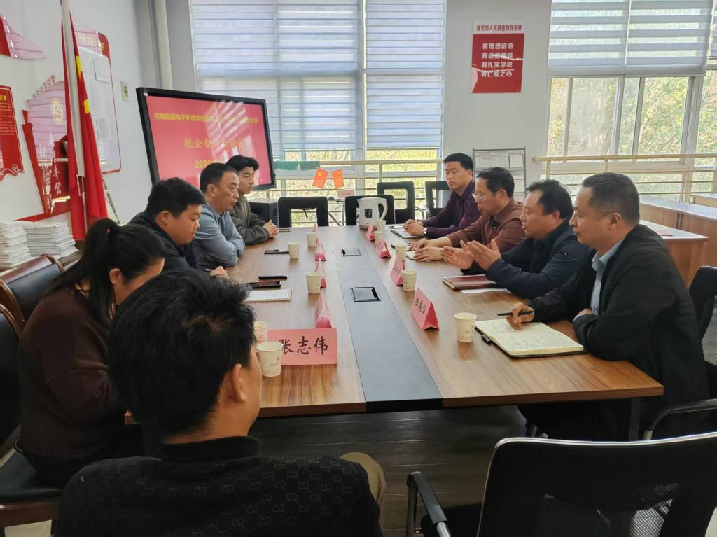为推进校企合作、产教融合,3月26日上午,公司在党员活动室与河南凯旺电子科技股份有限公司召开校企合作洽谈会,班子成员、骨干教师参加会议。