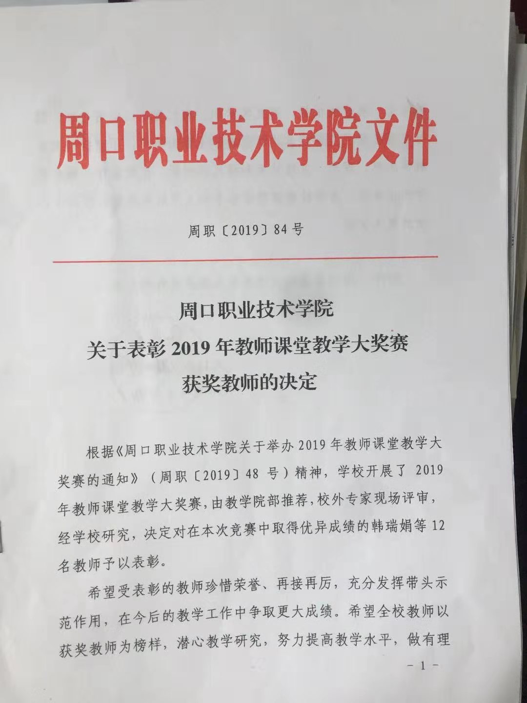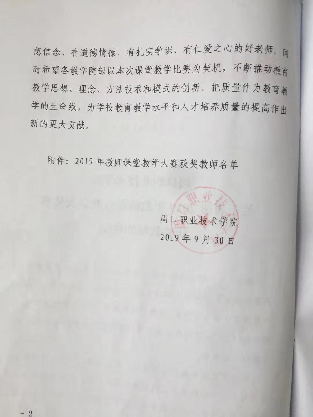 关于表彰2019年教师课堂教学大奖赛获奖教师的决定