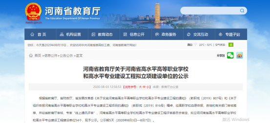 8月3日,河南省教育厅发布《关于河南省高水平高等职业公司和高水平专业建设工程拟立项建设单位的公示》。sunbet申搏机电一体化技术专业群,成功入选河南省高等职业公司高水平专业群建设工程。