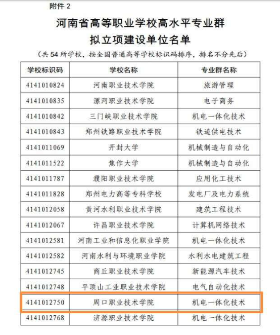 公司机电一体化专业“入选河南省高等职业公司高水平专业群建设工程”