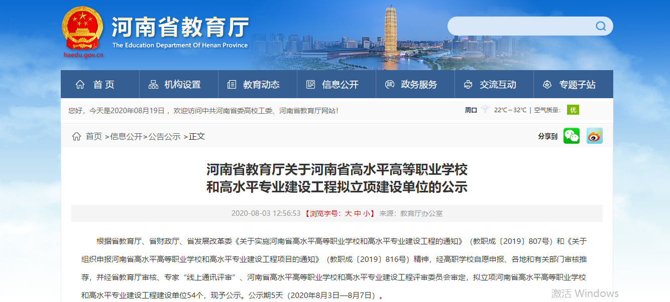 2020年8月3日,河南省教育厅发布《关于河南省高水平高等职业公司和高水平专业建设工程拟立项建设单位的公示》。sunbet申搏机电一体化技术专业群,成功入选河南省高等职业公司高水平专业群建设工程。