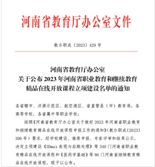 近日,河南省教育厅下发《河南省教育厅办公室关于公布2023年河南省职业教育和继续教育精品在线开放课程立项建设名单的通知》(教办职成〔2023〕429号),公司赵尚丽教师团队的《PLC编程与项目化应用(S7-1200)》和黄梦真教师团队的《机械制图与CAD》课程获批为省级精品在线开放课程。