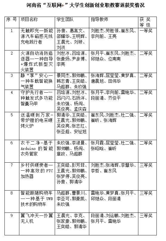 近日,河南省教育厅发布了2023年“互联网+”老员工创新创业大赛暨第九届中国国际“互联网+”老员工创新创业大赛职教赛道河南赛区选拔赛获奖名单的通知,公司获得一等奖1项、二等奖5项、三等奖3项。公司教师刘胜杰、劳胜领、崔东风、李向前和王亮这5名教师荣获“优秀创新创业指导老师”荣誉称号。