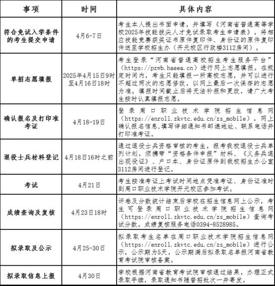 sunbet申搏2025年高职单招日程安排表