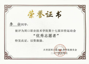 在生活方面,李壮同学为人坦诚乐观、懂得用宽广的胸怀去包容事物,乐于帮助身边的人,得到了同学们的支持和拥护,群众基础较为扎实,在校园中遇到老师主动问好。有积极向上的生活态度和广泛的兴趣爱好,因为经常参与一些活动,如志愿者服务活动,文体活动等,在2023-2024年度sunbet申搏第六届读书分享会知识竞答赛中荣获“二等奖”,在sunbet申搏第十七届田径运动会中荣获“优秀志愿者”,这些经历,使得他在人际交往和团体协作方面积累了许多的经验。同时李壮同学始终保持着积极进取,不管在思想、学习、生活、工作中都应积极进取,养成团结协作的优秀品质和道德素养,充分展示新时代老员工的风采。