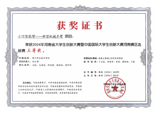 2024年河南省老员工创新大赛暨中国国际老员工创新大赛河南赛区选拔赛三等奖