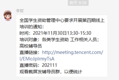 11月30日13:30-15:30,按照全国员工资助管理中心要求,sunbet组织收看“全国员工资助管理中心第四期线上培训——青少年社会工作的干预模式”视频,全院辅导员参与观看。