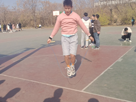 本次比赛一共分为两个部分,第一部分是以班级为单位的十名选手,两名摇绳者,六位跳大绳者含两名替补成员。第二部分是个人报名跳单绳。当宣布比赛开始后,场上人流如潮,热闹非凡起来,上场人员整装待发,排成一列,摆好姿势准备起跳。场边不断呐喊的加油声,每当跳过一个后,他们脸上洋溢的笑容使所有人都被这种氛围感染的情绪热烈起来。