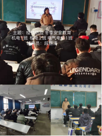 本次主题班会内容包括:1.疫情防控期间,非必要不外出,教育同学们要认清当前的疫情形势,做好自身防护,尽量减少出校和出市机会;2.做好安全教育工作,冬季天干物燥,禁止员工在宿舍使用大功率电器等违禁物品。