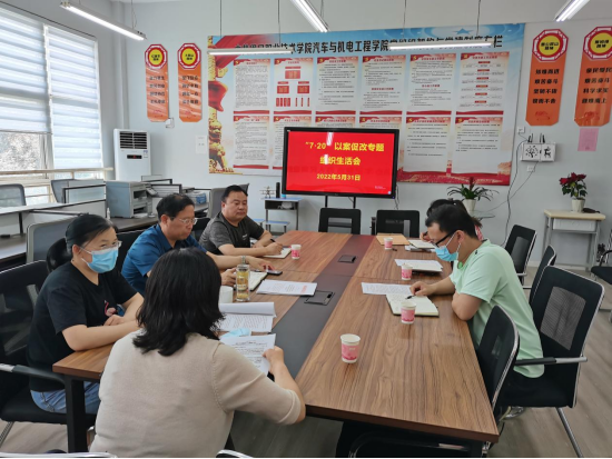 5月31日上午,汽车与机电工程公司教师党支部在实训楼党员活动室召开了郑州“7.20”以案促改专题组织生活会。支部委员参加此次会议,会议由支部书记崔东风同志主持。