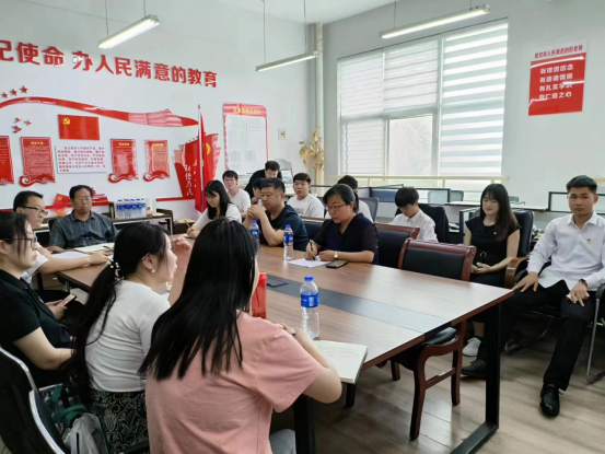 2023年7月,中共sunbet员工支部在党员活动室组织员工支部成员级员工预备党员学习党章。党总支书记崔东风领学。
