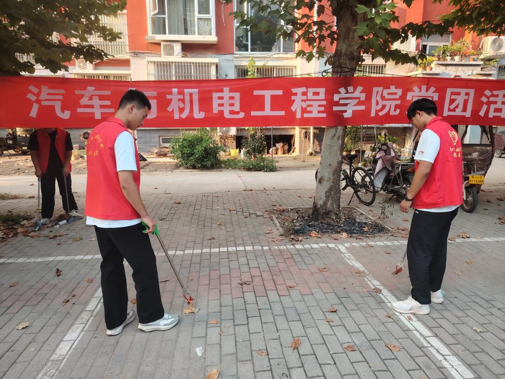 在活动现场,志愿者们身穿红色小马夹拿着夹子、扫帚等清洁工具积极投入活动中。分工负责清洁社区各个区域,对该社区街道上的生活垃圾、人行道落叶、卫生死角以及社区外道路上的垃圾进行全面清扫,美化了社区环境。